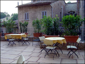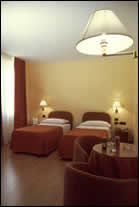 Le sue 43 camere, dai colori delicati ed avvolgenti, sono dotate di ogni comodità: servizi privati, climatizzatore, TV-color, telefono diretto, frigobar ed una piccola cassaforte. Inoltre, al suo interno, l`Albergo racchiude una luminosa veranda con un elegante giardino dove d`estate viene servita la prima colazione. Tutto questo è cinto dal raffinato abbraccio del Rinascimento, con il Duomo ed il Palazzo Ducale da un lato e l`altera presenza della fortezza Albornoz dall`altro.