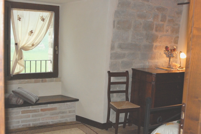 Ampia camera matrimoniale di 35 mq. in pietra con travi in legno a vista, stufa a pellet, bagno con vasca idromassaggio, tv, piccola biblioteca, ampie finestre. Possibilità di aggiungere due lettini singoli. La camera dispone di biancheria da camera e da bagno compresi accapatoi, asciugacapelli.